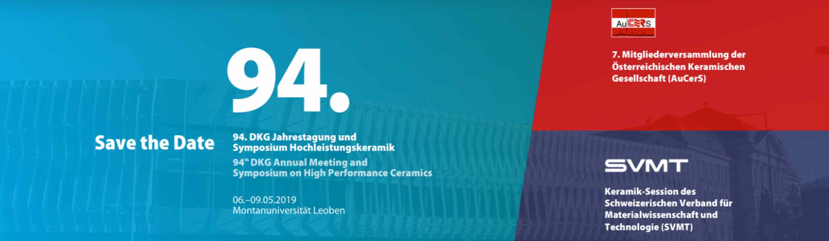 please use this Registration portal to booking of Exkursionen, Welcome reception, Get-together and Conference dinner of the D-A-CH Ceramic Session, jointly organised by DKG, AuCerS and SVMT, from May 05th - 09th, 2019, Leoben, Austria.